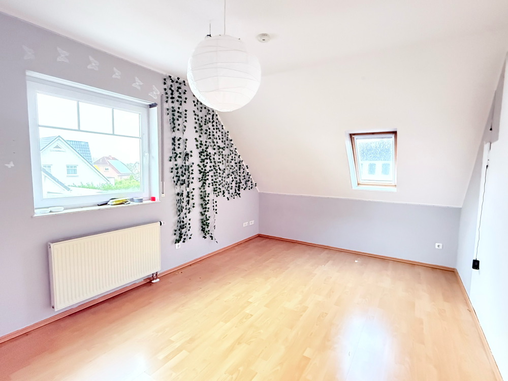 Über den Flur erreichen Sie den Dachboden, der zusätzliche Abstellfläche bietet. Hier befindet sich auch die moderne Viessmann-Gasheizung, die erst vor zwei Jahren erneuert wurde. Wie bereits erwähnt, lässt sich diese komfortabel per App steuern – effizient, modern und energiesparend.