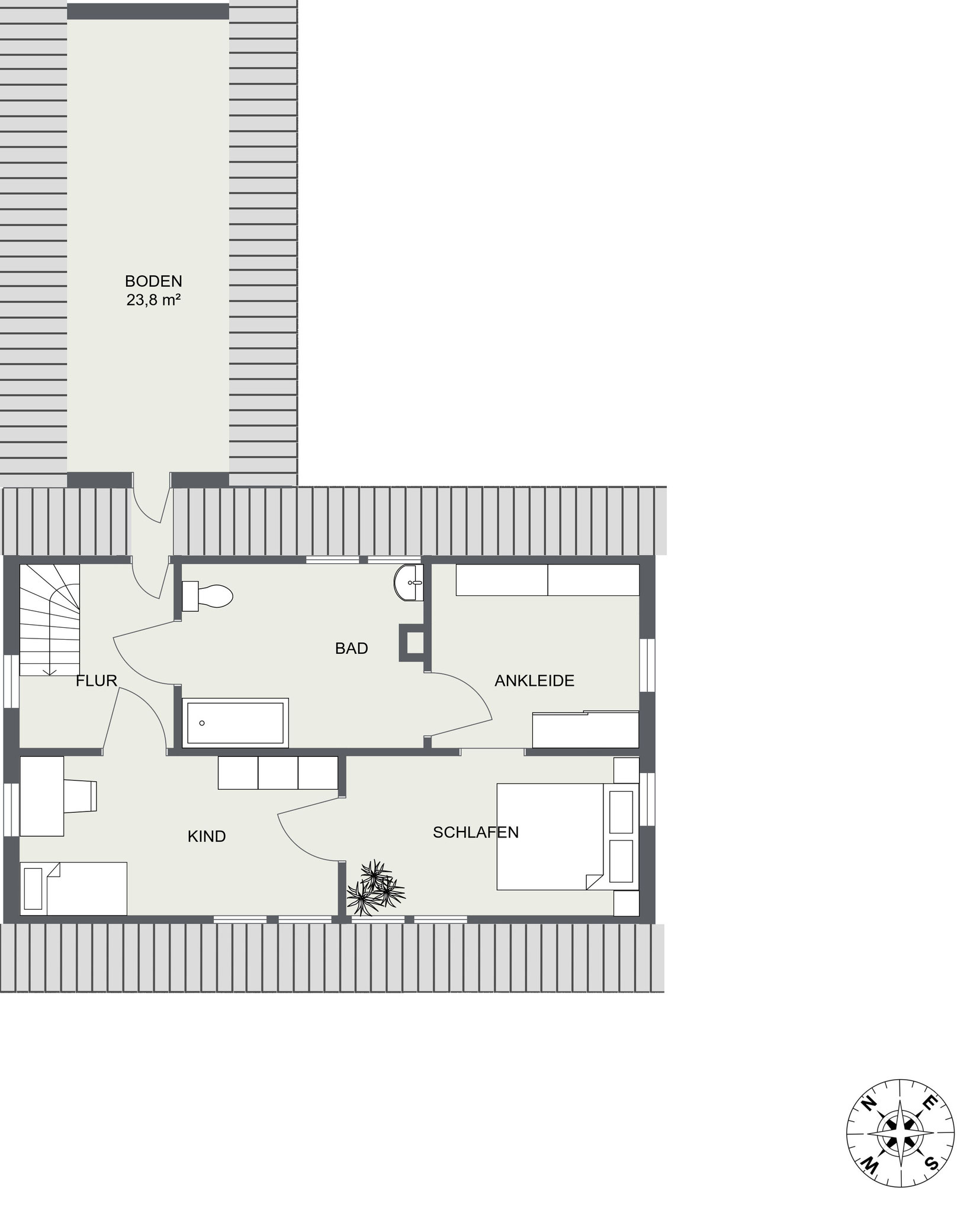 Das Obergeschoss ist klassisch über Durchgangszimmer miteinander verbunden, was dem Grundriss eine gewisse Wohnlichkeit und historische Struktur verleiht – perfekt für alle, die den Charme älterer Häuser zu schätzen wissen.