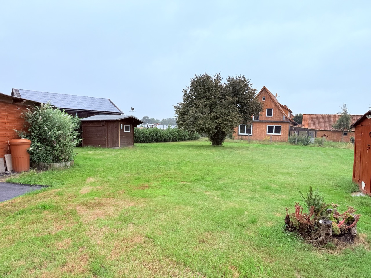 Im weitläufigen Garten stehen zwei Gartenhäuser, die zusätzlichen Stauraum oder Rückzugsorte für kreative Nutzung bieten. Trotz der Größe ist das Grundstück aktuell pflegeleicht angelegt und somit auch für Gartenneulinge gut zu bewältigen.