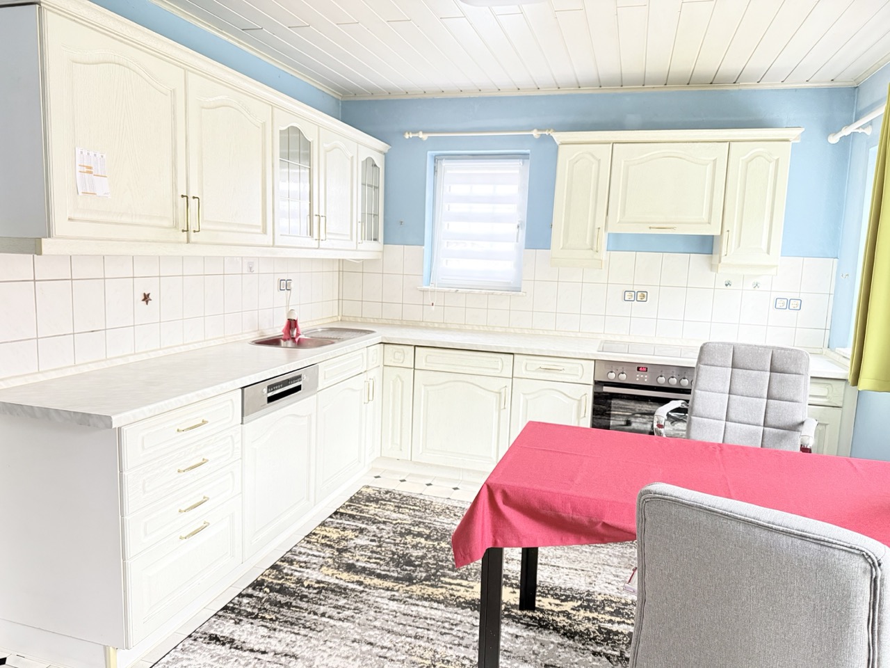 Am Ende des Flurs eröffnet sich zur Giebelseite des Hauses die geräumige Küche. Sie ist mit einer gepflegten Einbauküche im gemütlichen Landhausstil ausgestattet, die im Kaufpreis enthalten ist. Besonders schön: Von der Küche aus hat man einen direkten Zugang zur Terrasse – ideal für Mahlzeiten im Freien oder den morgendlichen Kaffee mit Blick ins Grüne.
